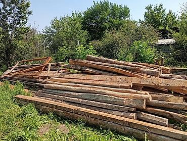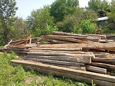 Деревянные материалы (распил и брус/брёвна) из разборки. Состав: - Доски разной толщины и длины, в том числе широкие щиты/настил. - Брусья и круглые брёвна/столбы. - Планки и короткие обрезки для ...