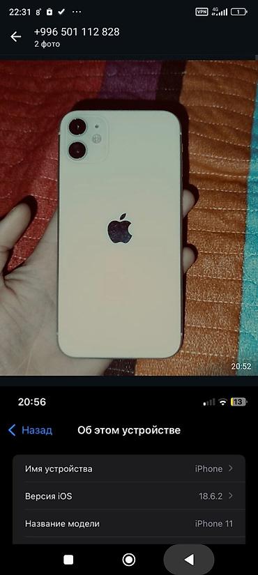 IPhone 11, 128 ГБ, белый - Модель: iPhone 11 (модель MWM22KH/A) - Память: 128 ГБ (доступно ~31,76 ГБ на момент фото) - Цвет: белый - iOS: 18.7 - Экран: Liquid Retina HD - Биометрия: Face ID - Кам...