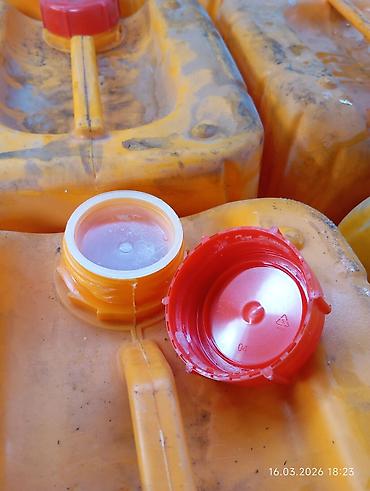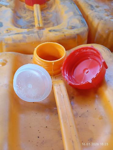 Пластиковые канистры с крышками - Материал: плотный ПЭНД (пищевой/технический пластик). - Цвет: жёлтый, крышки с уплотнительным кольцом (резьбовые, красные). - Объём (ориентировочно): 20–30 л кажд...