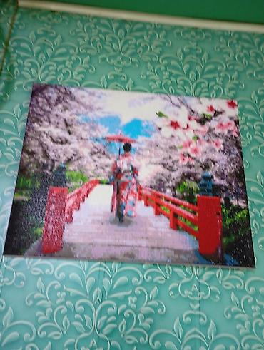 - «Гейша на мосту сакуры» — японский мотив: фигура в кимоно на красном мосту среди цветущих вишен.
