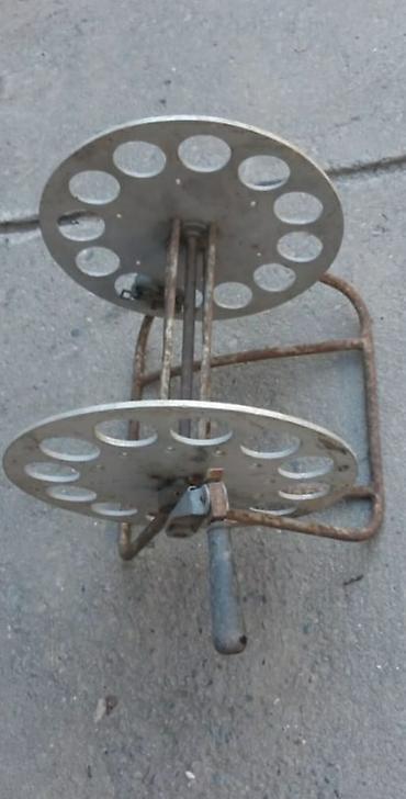 - Конструкция: металлическая рама с двумя дисками-барабанами и осью, перфорация дисков для облегчения веса и укладки кабеля.