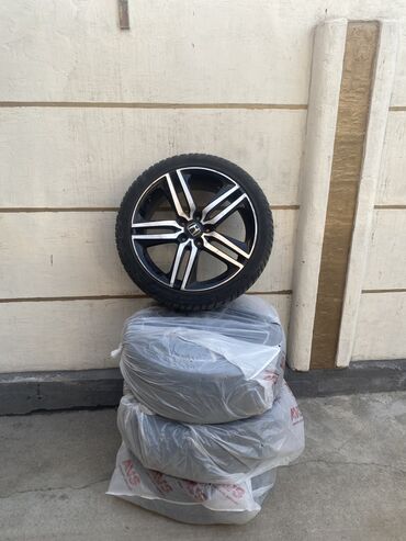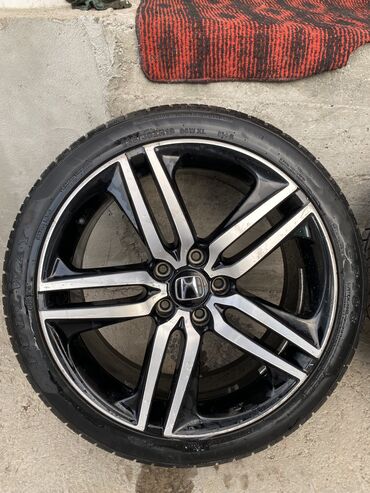 Колесо в сборе для Honda аккорд - Диск: оригинальный литой Honda, 10‑спицевый, серебристый. Разболтовка 5×114.3, центральная заглушка с логотипом H. - Диаметр диска: 17". - Шина: Bridgestone Regno...