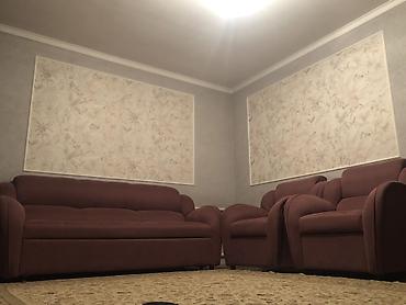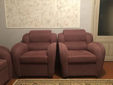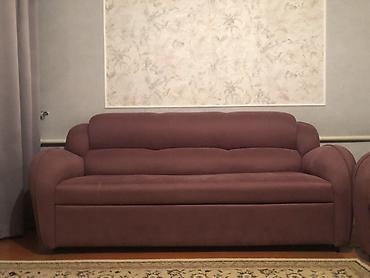 Только что отремонтировоно Комплект мягкой мебели в едином стиле и цвете (приглушённый винно‑розовый/марсала): диван + два кресла.