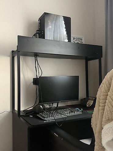 - Конструкция: прочная металлическая рама с широкой верхней полкой — удобно для размещения системного блока, колонок или декоративных вещей.
