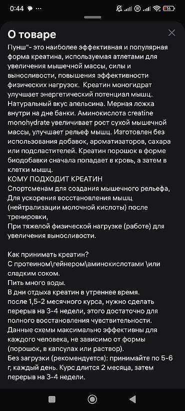 - пакет 500 г, 100 порций, по 4,5 г креатина в порции, вкус ананас.
