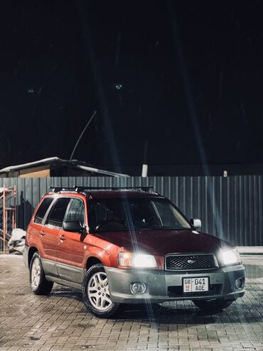 Subaru Forester (правый руль), красный кроссовер с серыми накладками бамперов и порогов. Номерные знаки KG. Оснащение и особенности по фото: