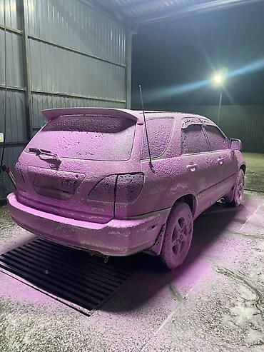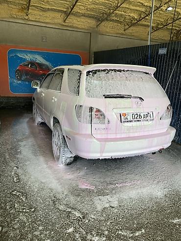 Автомобиль показан после мойки с активной пеной (розовая/белая) и в чистом виде при дневном и ночном освещении. Классический надежный кроссовер Lexus RX первого поколения — комфортный, просторный и практичный.
