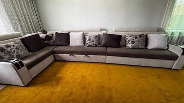 Продаем в связи с переездом. не просиженный не вонючий. - Большой Г-образный диван, состоит из нескольких секций, которые формируют длинную прямую сторону и укороченный боковой модуль.