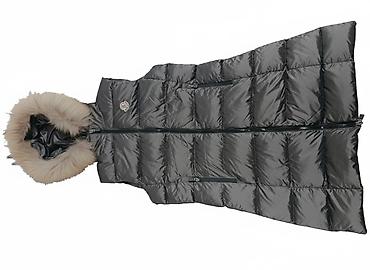 4) Пуховый жилет с капюшоном и меховой опушкой (графитовый)