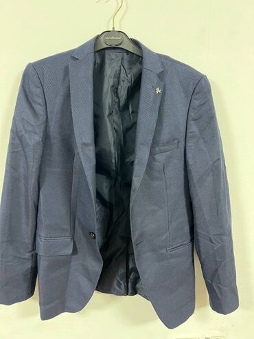 3) Сине‑графитовый с мелкой текстурой (микроджайв/«птичий глаз»), значок на лацкане.