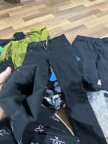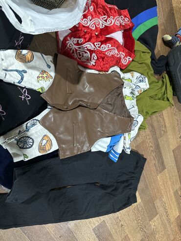 Детские сеты одежды на девочку 5-6-7 лет. Каждое фото 1000 сом. В составе: - Костюм-двойка черный (жакет на пуговицах + расклешенные брюки). - Велюровый спортивный костюм темно‑синий с капюшоном...