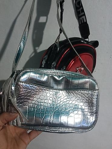 1) Серебристая прямоугольная сумка