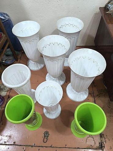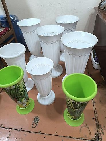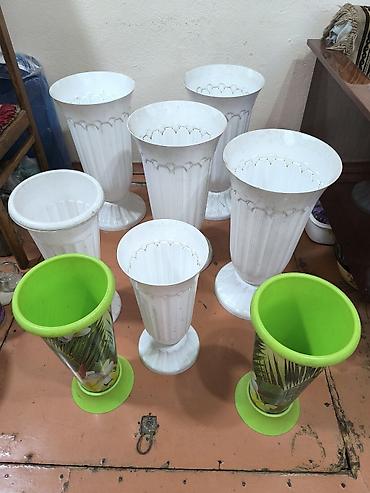 Набор высоких уличных вазонов/кашпо на ножке, средние вазоны 300сом/шт, диаметр 22см, высота 47см. Большие 400сом/шт, диаметр 27 см, высота 52см.