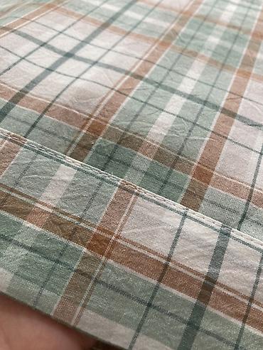 - Дизайн: классическая клетка в спокойных оттенках зелёного, терракотового и белого; аккуратная простёжка и ровная кромка.