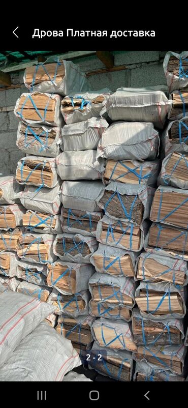 Дрова в мешках. - Порубленные, сухие поленья в мешках, аккуратно уложены и перевязаны. - Фракция: колотые поленья среднего размера, удобные для печей, каминов, бань и мангалов. - Упаковка: пло...