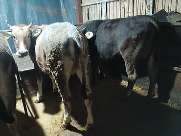 бычки 3 голв большому 2 месяц маленьким 1 месяц молоко пьет, сено кушает, драблёнку кушает. рост большой 86см маленькие 75см, Кара-Балта село Экин-Сай 🚩 цена за большому 60т,маленьким 45т. в круг 140
