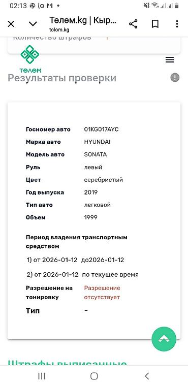 Соната 2019 ГАЗ 2 об. 320000км сост жакшы, СВЕЖИЙ КЕЛГЕН.1 АЙ БОЛДУ.,90 % родная краска, салон и кожа жакшы сост., зима шины, айнекери родной баары!!!!.КИЧИНЕ ТУШУП БЕРЕМ !!! ВОТСАПТАН ЖАЗГЫЛА Hyundai Sonata (седан), серебристый цвет.