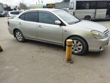 Toyota Allion седан, правый руль. Серебристый цвет кузова, 4 двери, тонировка задних стекол. Легкосплавные диски, штатные противотуманные фары, повторители поворота в крыльях. Задние фонари красно-оранжевые, антенна на крыше.