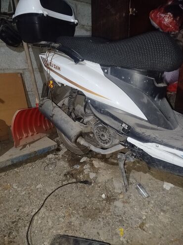 - Марка/модель: SYM (логотип и наклейки SYM на боковине)
