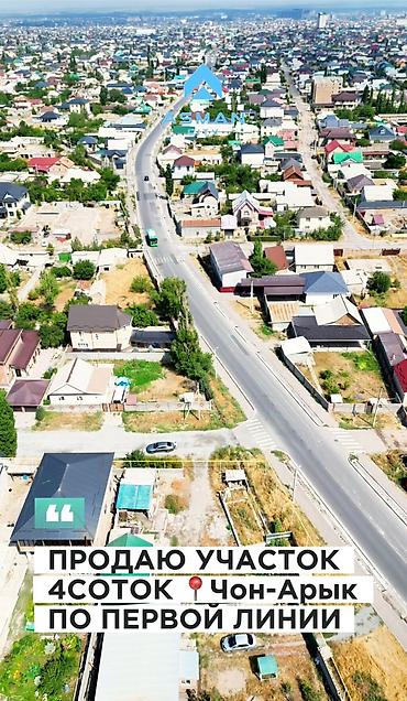 Продается отличный земельный участок площадью 4 сотки, расположенный в самом сердце Чон-Арыка, по первой линии.