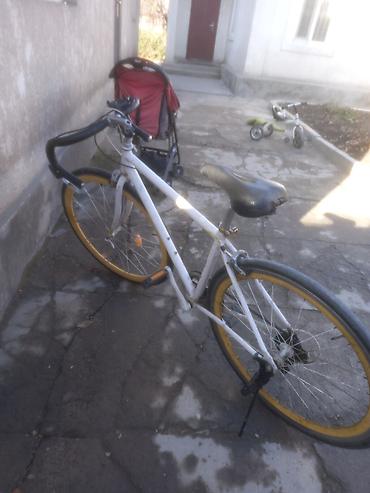 - Колёса: 28" (700C) на жёлтых ободах, покрышки дорожного типа.