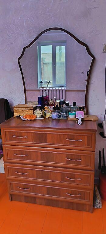 продаю 2спальн.кровать трюмо и 2тумбочки.за 10000 сом.состояние среднее.матраса нет