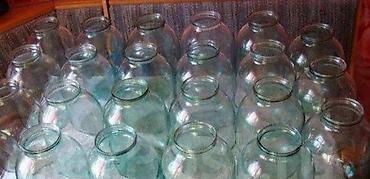 Стеклянные банки классические, прозрачные. Объём 1 и 3 литра (широкое горло под стандартную металлическую крышку Ø82 мм «твист-офф» или под обычную жестяную закаточную крышку). Толстое стекло, ровное горлышко, устойчивое дно.