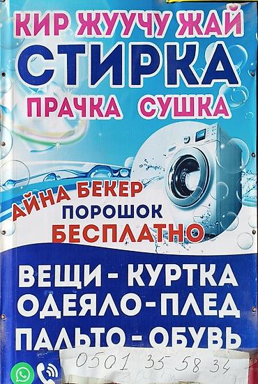 Стирка / сушка / кир жуучу жай. Все виды одежды / повседневная одежда / подушки / пледы / шторы / куртки / бельё / обувь / авто чехлы. Быстро. Качественно. Доступно одежда одна загрузка - 120 со...