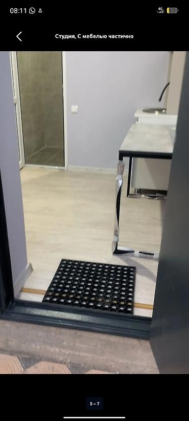 - Планировка: единое помещение студийного формата, зона мини‑кухни у входа, санузел/душевая с плиткой.