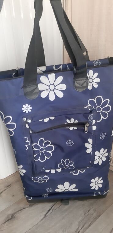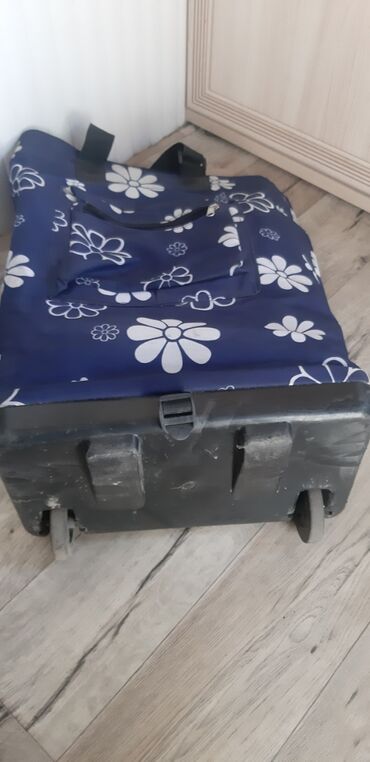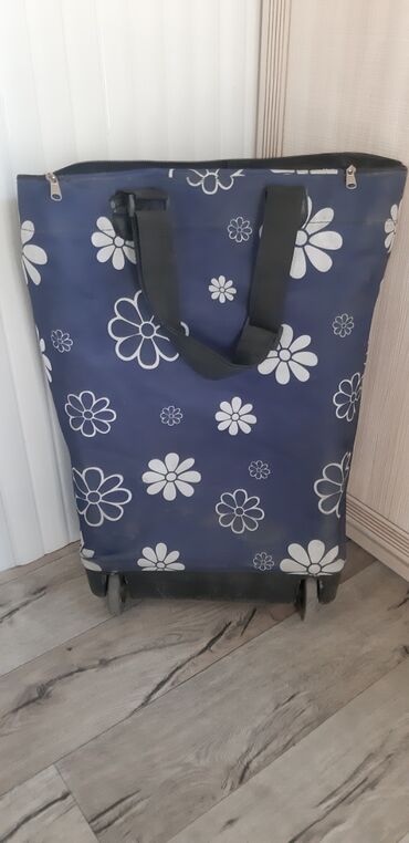 Продаю бу хозяйственную сумку - тележку на колесах, в отличном состоянии , внутри сумка обшита дерматином , колеса на подшипниках , пользовались мало. Уступка не более 200 сом .До 40 кг.