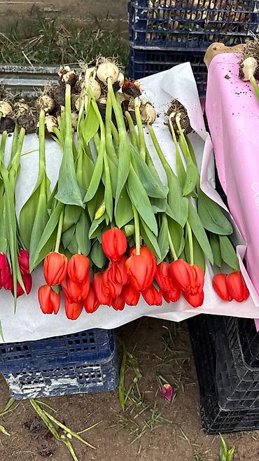 - Срезанные тюльпаны на длинном прочном стебле, с плотным бутоном. Срез возможен «с луковицей» или классический — по стеблю.