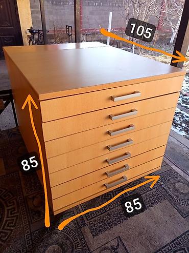 Тумба большая Можно класть плакаты не сгибая Размер ящиков внутри