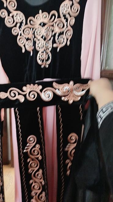 Идеально для торжеств, традиционных мероприятий и фотосессий. Цвета: розовый/черный с золотисто-розовой вышивкой. Комплект подчеркивает талию и эффектно смотрится в движении.