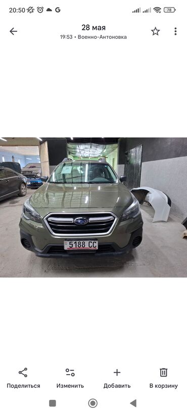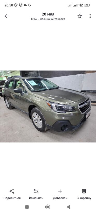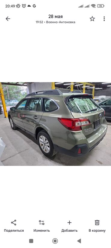 Subaru Outback, универсал-кроссовер в зелёном цвете (оливковый металлик).