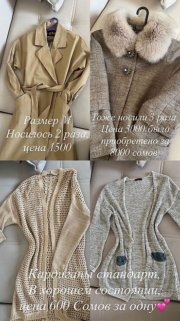 4) Кардиганы, стандарт. Ажурная вязка, два цвета. Цена: 600 сомов за один.