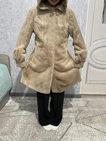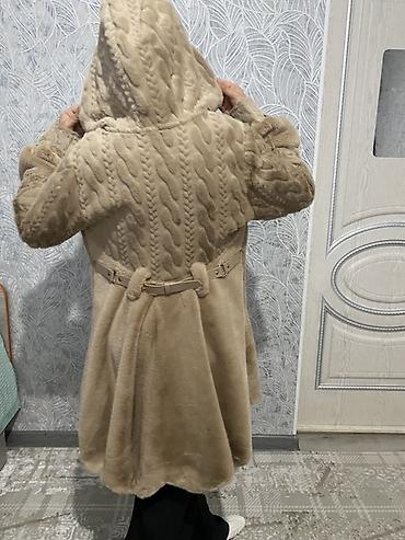Детская шуба-пальто с капюшоном, бежевый цвет.