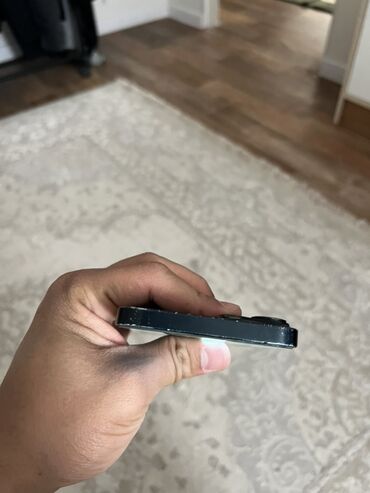 IPhone (серия с плоскими гранями и вырезом‑«чёлкой», диагональ около ) в чёрном цвете.