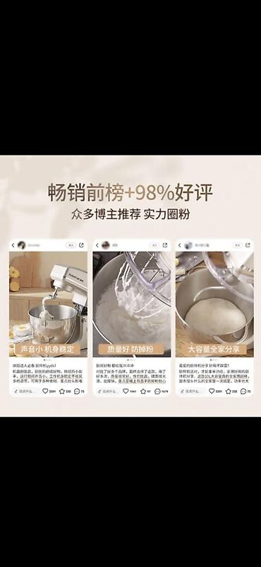 - Мощность 2200 Вт — быстро вымешивает плотное тесто, взбивает кремы и белки, замешивает фарш.
