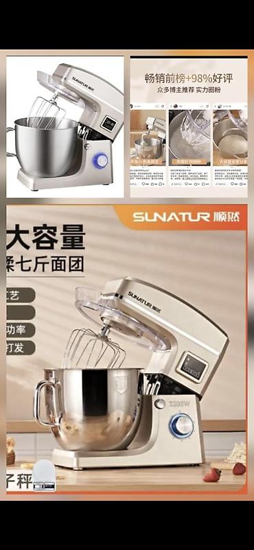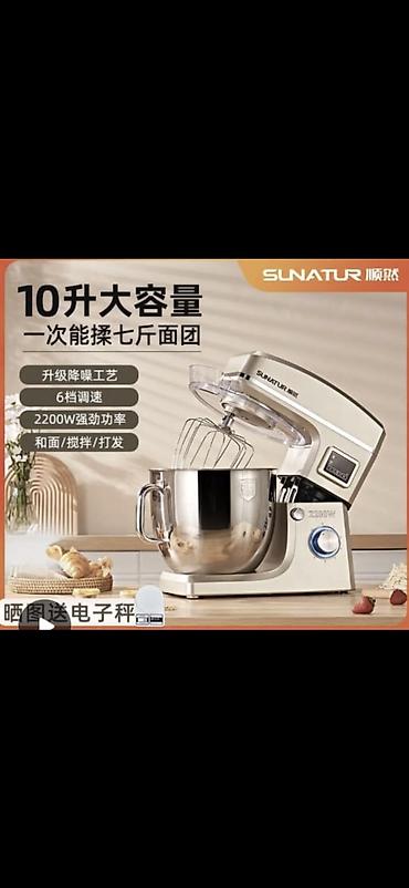 В комплекте: металлическая чаша 10 л, венчик; предусмотрено хранение насадок в корпусе. Цвет корпуса — светлый металлик. Бренд: SUNATUR.