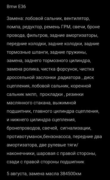 BMW E36, хорошее техническое состояние, спортивный приятный выхлоп, хорошая тяга, маленький расход город 8-9литров, датчик температуры и заряд аккумулятора, запаска, печка Ташкент, вложения по мелочи
