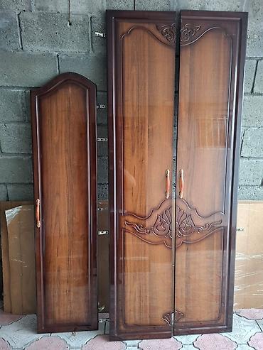 - шкаф трехсекционный: общий модуль с шестью дверцами (центральные створки с резьбой и накладными ручками);