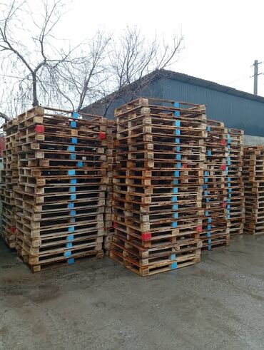 Деревянные поддоны (паллеты) - Материал: массив дерева. - Тип: европоддоны/стандартные паллеты, маркировка EUR/EPAL на частях. - Конструкция: двухнастильные, с проёмами под вилы погрузчика и роклы...
