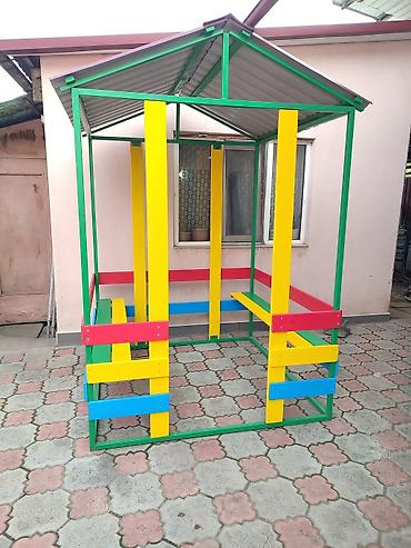 Домик - беседка в наличии с двумя скамейками , каркас из металла .