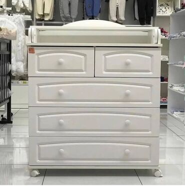 - Верхняя часть оснащена откидывающейся/выдвижной пеленальной доской с бортиками для безопасного ухода за малышом.