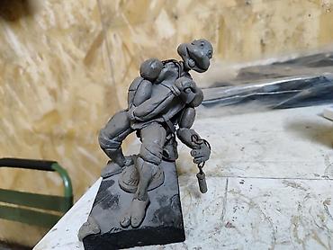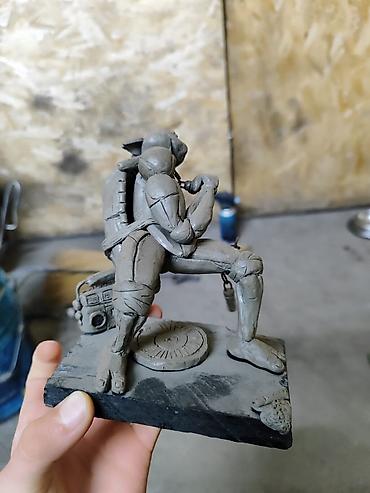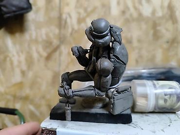 Фигурка сделана из серого скульптурного пластилина поэтому держится прочно