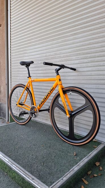 Фикс/трековый велосипед + городской велосипед 1) Фикс/трек - Рама алюминиевая WOKE (надпись на трубе), горизонтальные дропауты - Вилка жесткая карбоновая/алюминиевая с прямыми перьями, оранжевая -...