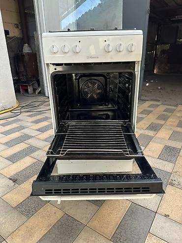Газовая плита Hansa белого цвета с четырьмя конфорками и духовым шкафом. Регулировка температуры осуществляется поворотными переключателями, расположенными на панели управления. Духовка оснащена стеклянной дверцей, позволяющей визуально контролировать процесс приготовления. В нижней части плиты предусмотрен выдвижной ящик для хранения посуды и кухонных принадлежностей. Подходит для использования в квартирах и частных домах.