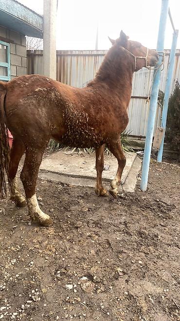 Бышты 3 жаш сатылат улагы баар Лошадь верховая, масть темно-гнедая. Крупная, хорошо сложенная, с выраженной мускулатурой и крепкими ногами. Высокая холка, ровная спина, глубокая грудь. Хвост и гр...