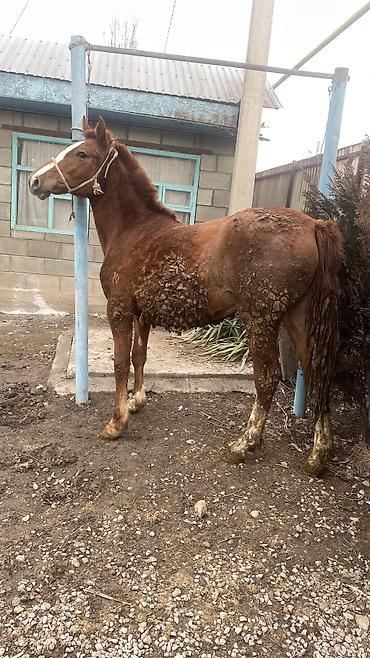 Бээ 5 жаш бооз колу буту соо ден соолугу чын жоош ! Лошадь (масть гнедая), вероятно кобыла, на привязи. Крепкий костяк, широкая грудь, выраженная мускулатура крупа. Конечности ровные, копыта т...