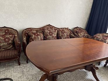 - Гарнитур подходит для гостиной или столовой, создаёт единый ансамбль «диван-кресла-стол»